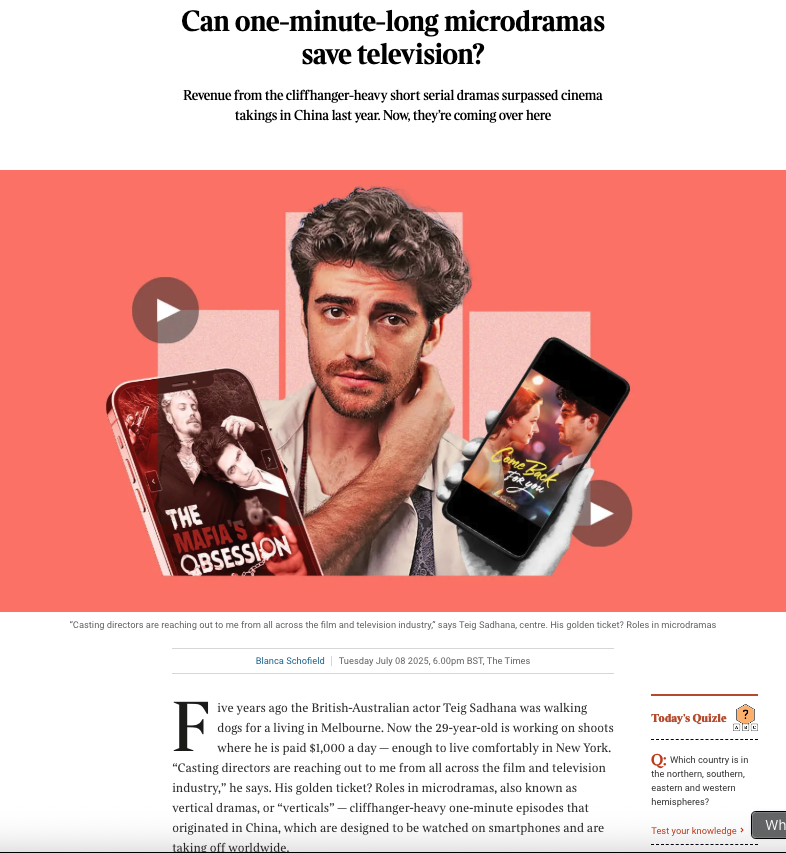 As the Vertical Drama market has exploded in the last year, Teig has fast established himself as a prominent figure on the vertical screen. He has amassed an impressive resume of critically and commercially successful films and worked with all the industry’s major platforms - ReelShort, ShortMax, DramaBox, Goodshort, DramaWave.